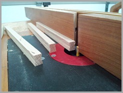 | After resawing, the side pieces were ripped into two pieces to allow for the space on the sides where the external connectors would be located. |