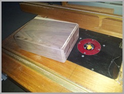 | Next, I put a 3/8” roundover bit in the router table and rounded over all the edges of the box to make it comfortable to hold in my hands. |