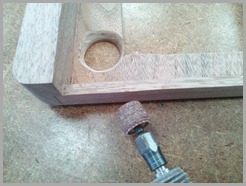 | The joystick bases are semi-spherical and need a little more space. So, using a drum sander attachment on the Dremel tool we make the hole openings concave. |