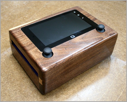 The design goal was to build a tablet type device that could be useful as a remote, demo device, have some room for storage, be battery powered, and look nice – lots of software & sawdust.