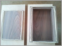 | While the sides were drying, I worked on the top & bottom. I found a wide piece of 7/8” walnut and cut it to 9 1/2” x 7”. |