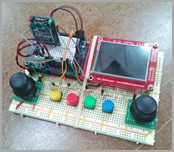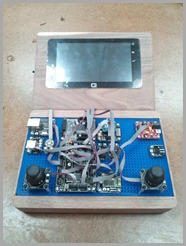 …begins a couple years ago when I started the Omnicopter. To fly the copter, I needed a remote. So, I built the Omnimote (right). It was a Panda-II powered remote that used XBee to communicate with the copter. It also had a small (slow) FEZ Touch display that was useful for displaying some info but had limited ability as a touch screen due to it being a resistive touch screen and it was just too slow to be depended on for use during flight.