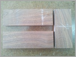 | I started by taking a scrap piece of 3/4” walnut and cut it into three pieces. Two long pieces (9 3/4”) would serve as the top & bottom sides of the box. A 6” piece was cut for the other two sides of the box. |