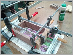 | After giving the glue 24 hrs to harden, I took the clamps off and glued up the top & bottom. Glue was brushed on to ensure 100% coverage of the glued surfaces. Too much glue is better than two little. The right amount of glue will produce some squeeze out that will help ensure you have no gaps. |